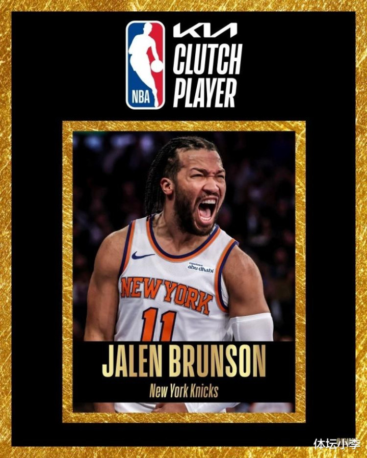 NBA官方宣布,尼克斯球星布伦森荣获本赛季NBA年度关键球员奖(杰里-韦斯特奖)。